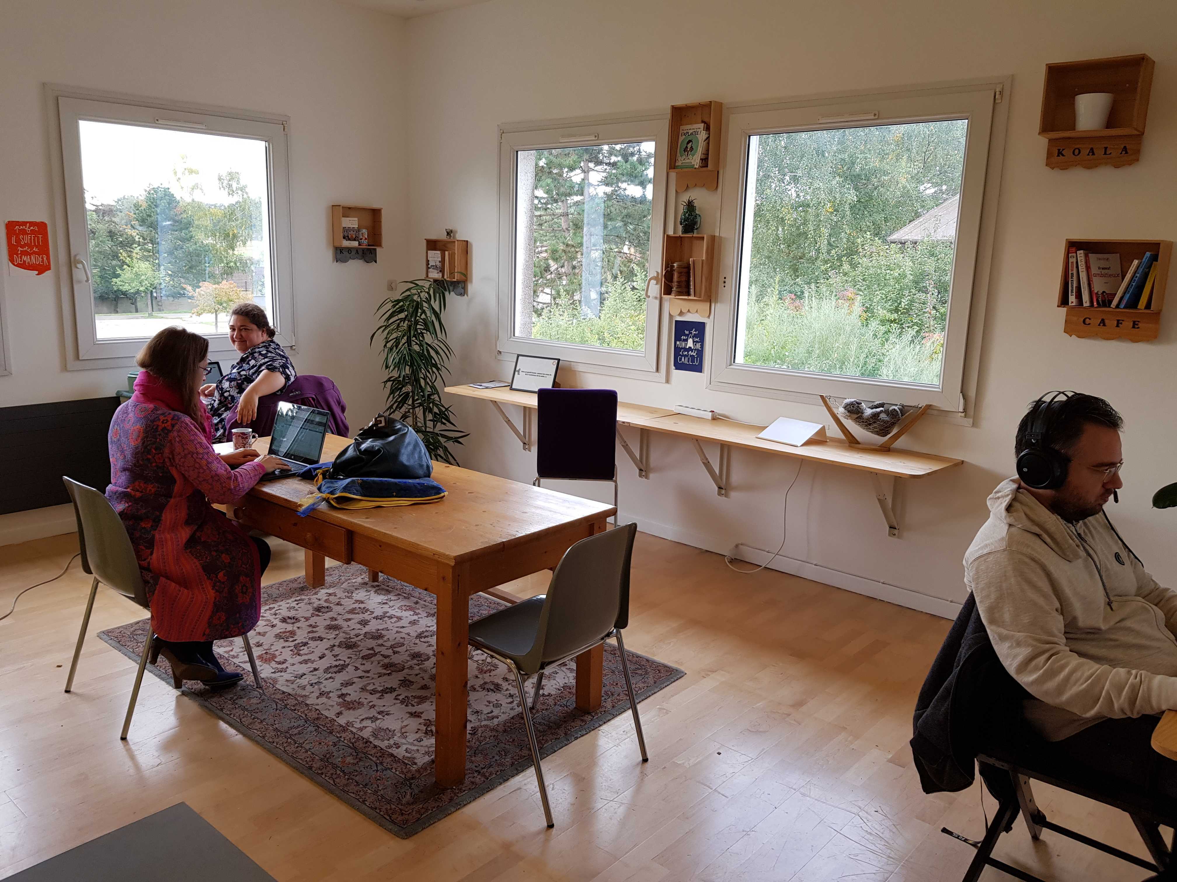 Je suis venue pour une journée collaborative (chacun donne un peu de temps pour faire évoluer Koala café ensemble) et je suis restée jusqu'au soir. C'était une super expérience, je me suis sentie adoptée tout de suite, et inversement ! On a bien ri, bien échangé et on a aussi travaillé bien sûr. Le lieu est agréable (on a même eu de la neige en poisson d'avril), hâte de voir ce que ça donne quand il fera meilleur ! Je reviendrai, ça c'est sûr 😎